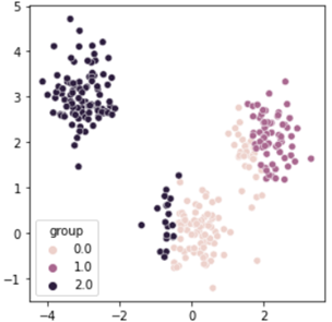 먼저, 데이터를 생성하기 위해 (0,0) (2,2) (-3,3) 주변으로 랜덤하게 100개의 포인트를 만들었습니다.