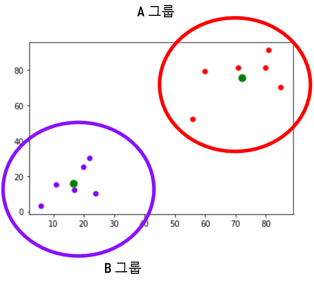 * 때로는 평균 대신 클러스터의 중앙에 위치한 점을 중심으로 정하기도 합니다.