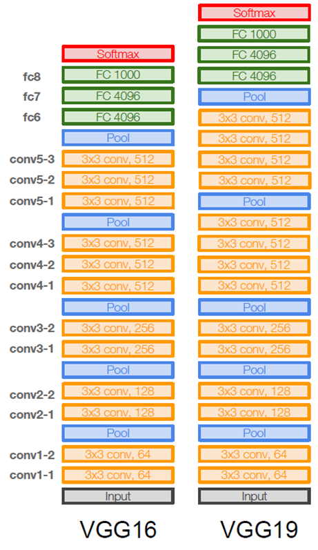 VGG16과 VGG19의 구조는 위와 같습니다.