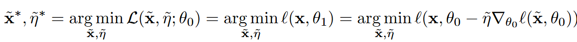 그 후 θ_1을 기반으로 loss를 계산하여 x ̃와 η ̃를 업데이트하는 것이 기본 아이디어입니다.