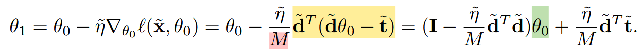 따라서 θ₀에 곱해지는 부분인 I - (η̃/M)d̃ᵀd̃가 0이 되어야 합니다.