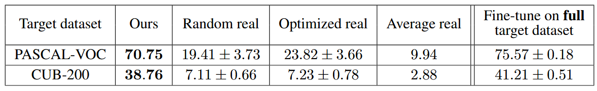 - Random real images: 카테고리당 같은 수의 실제 이미지를 랜덤 샘플링