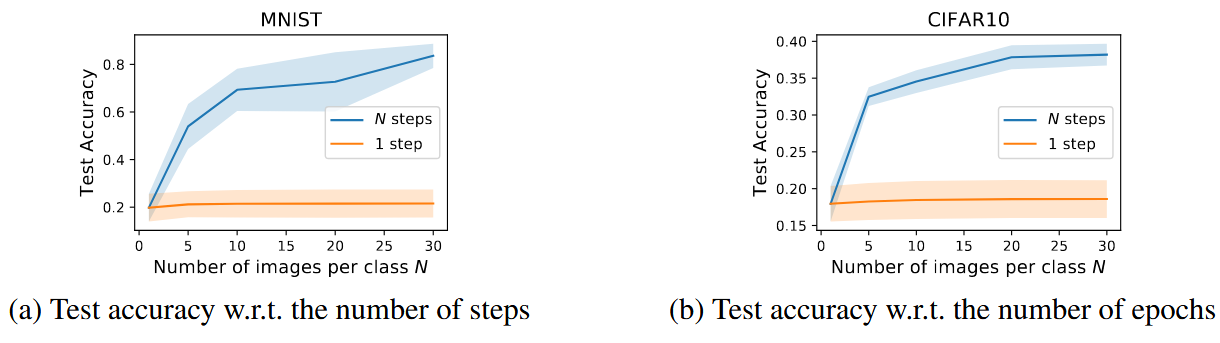 - 다양한 방식으로 초기화된 모델에도 일반화되는 방법, 여러 step과 epoch를 통한 성능 향상 기법, distilled images 개수의 하한에 대한 분석을 제시함.