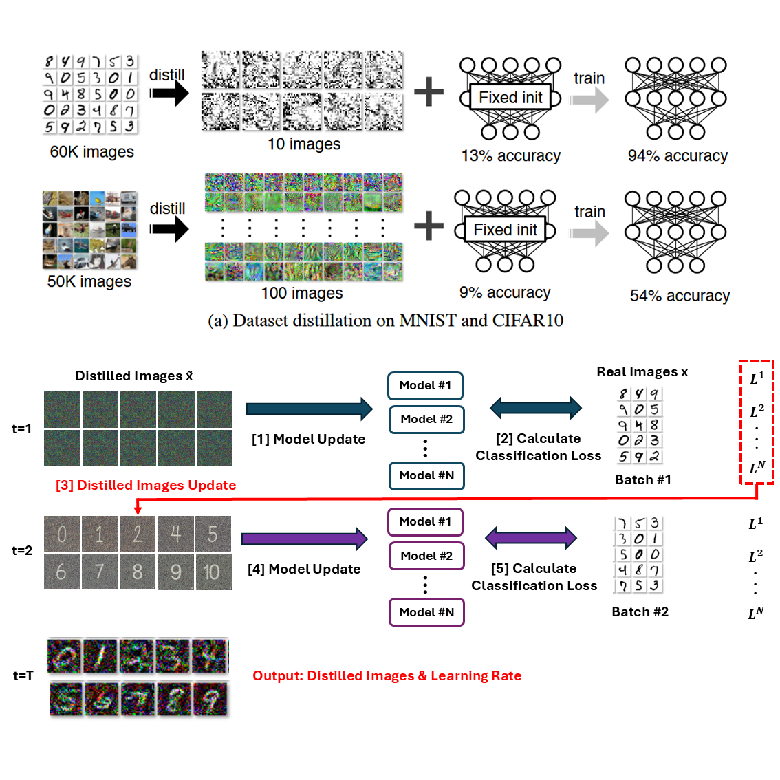 예를 들어 MNIST는 784차원, CIFAR10은 3072차원이므로 수백~수천 장의 증류 이미지가 필요해져 압축의 의미가 없어지게 되는 거죠.